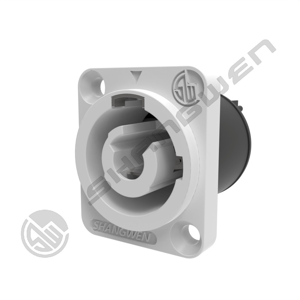 الاستخدام الداخلي Powercon الهيكل 3 موصل 20A 250V الطاقة خارج 3/16 "محطات علامة التبويب المسطحة اللون الأبيض لخزانة شاشة LED